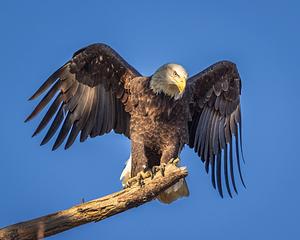 Bald eagle setting up to hunt the river in Exeter New Hampshire.