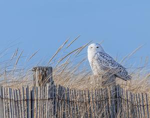 Beautiful Snowy Owl enjoying a quiet afternoon on the beach.