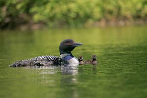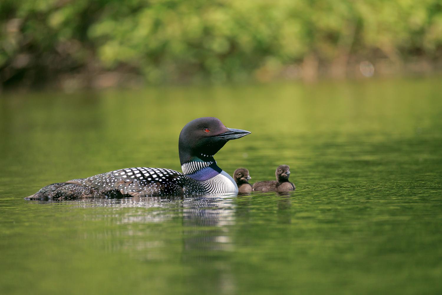 I had the best of times photographing these loons. The babies arrive the later part of July and are in the water soon after hatching, riding on moms back!