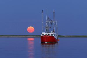 Full moon rising in Chatham by the fish market. The fishing vessel "The Count" is the star of this photograph! This prints superb on metal.