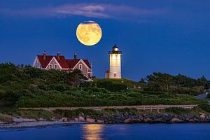 Full moon rising over Nobska Lighthouse. This photograph prints exceptional on metal!