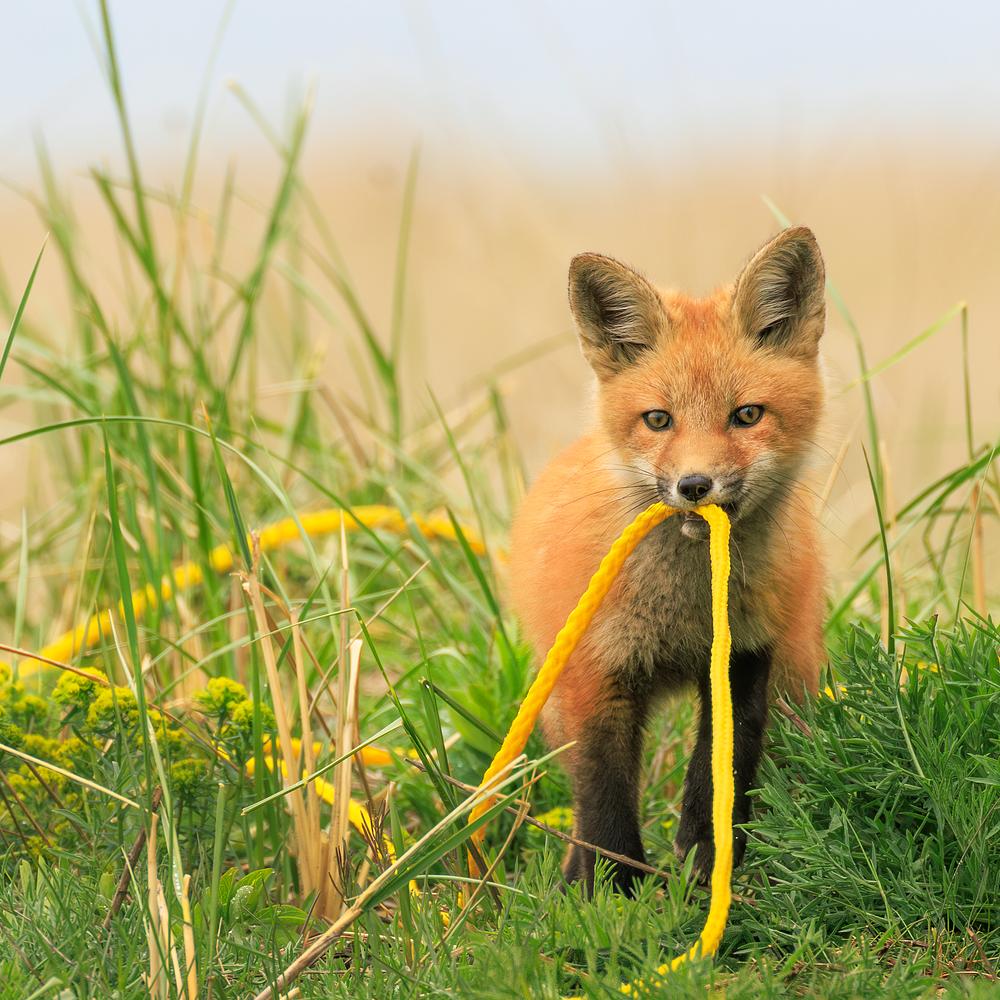 The rangers hung yellow rope along a protected area and the fox kits used it during playtime. Fun to watch!